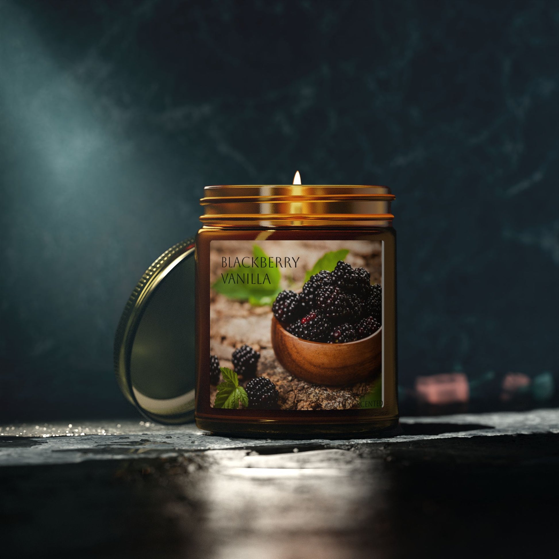 Close your eyes and imagine a quiet evening: warm light, a soft amber glow, and the sweet, rounded scent of blackberry vanilla folding into subtle coconut and apricot wax. This 4oz or 9oz candle is hand-poured with coconut apricot wax that burns clean and steady, releasing juicy dark berries and sugared vanilla tempered by a smooth, warm musk. The amber or clear glass vessel with a gold lid feels at home on a bedside table, shelf, or bathroom ledge — and once the last wick is low, the jar cleans up nicely to become a small vase or catchall. Made in the USA with natural, non-toxic ingredients, it’s built to fill quiet rooms with layered, comforting aroma without any synthetic baggage.